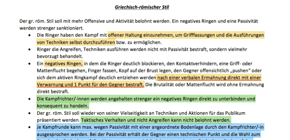 Die UWW hat mit dem Jahreswechsel die Regelanpassung mit Schwerpunkt im gr.-röm Stil vollzogen.