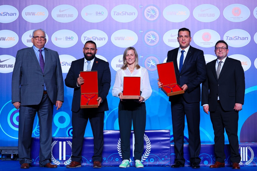 Im Rahmen der Weltmeisterschaften der nicht-olympischen Gewichtsklassen in Tirana (Albanien) wurde unsere Kampfrichterkollegin Ramona Scherer von United World Wrestling Präsident Nenad Lalovic mit der Goldenen Pfeife ausgezeichnet.